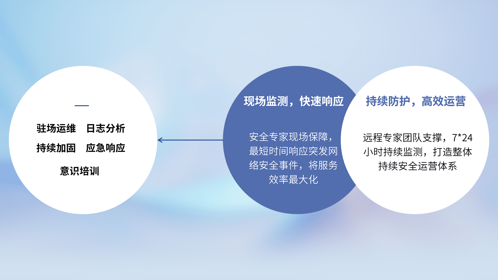 针对客户行业特性,,,,提供专属的一站式安全管理服务,,帮助客户全面感知网络空间威胁,,,通过安全专家的线上、、、线下防护支持,,,实现风险闭环,,,,将安全保障常态化,,,为客户打造常态化安全运维运营服务。。。。